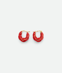 Hand-enameled 18-karat gold-plated silver twisted hoop earrings. Product details • Hand-enameled 18-karat gold-plated silver twisted hoop earrings Material: Sterling silver, Enamel • Color: Chili • Exterior diameter: 1.6 cm | 0.6" • Interior diameter: 0.7 cm | 0.3" • Height: 1.7 cm | 0.7" • Width: 0.6 cm | 0.2" • Due to hygiene-related reasons, this piece may not be returned Made in: Italy