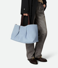 Reversible tote bag in Intrecciato silky calf leather. Product Details - Intrecciato silky calfskin reversible tote bag - Single detachable interior zippered pocket - Material: calfskin - Lining: Suede - Color: Madder Brown-Lunar - Hardware: Brass finish - Height: 23 cm | 9.1” - Width: 43 cm | 16.9” - Depth: 17.5 cm | 6.9” - Handle drop: 20 cm | 7.9” - Made in: Italy - Product code: 817166V5AG12102