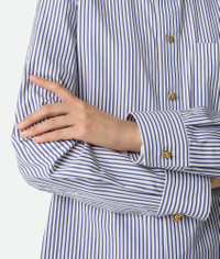 Shirt in pinstripe cotton poplin with knot button detailing. Product Details - Pinstripe cotton poplin shirt - Metal knot buttons - Regular fit - Color: White/Navy - Made in: Italy - Product code: 838420V2FB09066 Material - Material: 100% Cotton Size & Fit - Model is 177 cm | 5'9" and is wearing a Bottega Veneta size 38