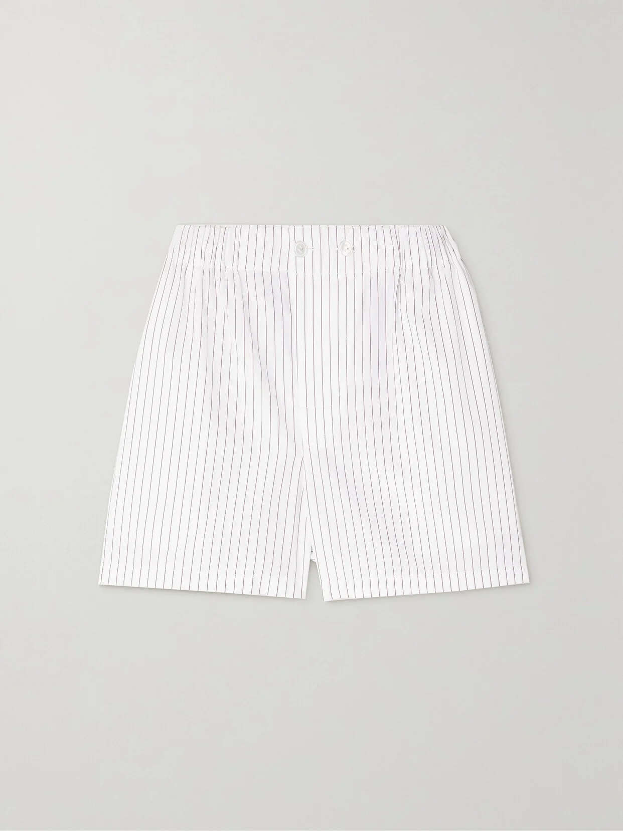 For Fall '23, Bottega Veneta's Matthieu Blazy is inspired by the street style of ordinary people - it's why the collection has no clear theme and instead celebrates the singularity of each look. These shorts are cut from pinstriped cotton-poplin and have a comfortable elasticated waistband. Style yours with a relaxed tee or the matching shirt, just like it was on the runway.