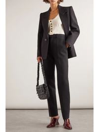 Bottega Veneta's pants are a smart choice to wear into the office or for evening plans. Tailored from cotton-blend crepe, they have a high-rise waist and are streamlined with pressed pleats through the straight legs. Wear yours with a blouse or bodysuit. Details & Care - Black cotton-blend crepe - Concealed button, hook and zip fastening at front - 67% cotton, 29% viscose, 4% polyamide - Dry clean