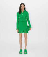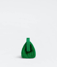 • Small leather crochet ribbing bag with top handle and detachable strap • Single compartment • Magnetic frame closure Material: 100% Lambskin • Unlined • Color: Parakeet • Hardware: Silver finish • Height: 15 cm | 5.9" • Width: 21 cm | 8.3" • Depth: 6 cm | 2.4" • Strap drop: 50 cm | 19.7” • Handle drop: 4 cm | 1.6" Made in: italy