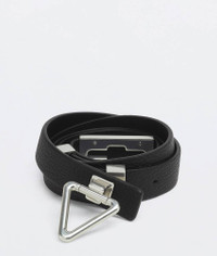 • Grained leather belt • Twist lock closure Material: 100% Calfskin • Lining: Calfskin • Color: Black • Hardware: Silver finish • Height: 2 cm | 0.8" • Depth: 0.5 cm | 0.2" Made in: italy