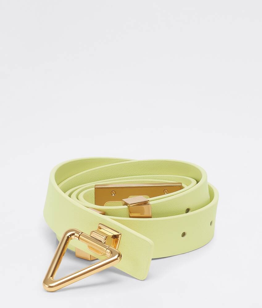 • Leather belt • Twist lock closure Material: 100% Calfskin • Lining: Calfskin • Color: Lemon Washed • Hardware: Gold finish • Height: 2 cm | 0.8" • Depth: 0.5 cm | 0.2" Made in: italy