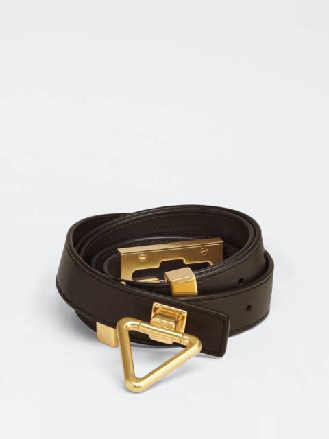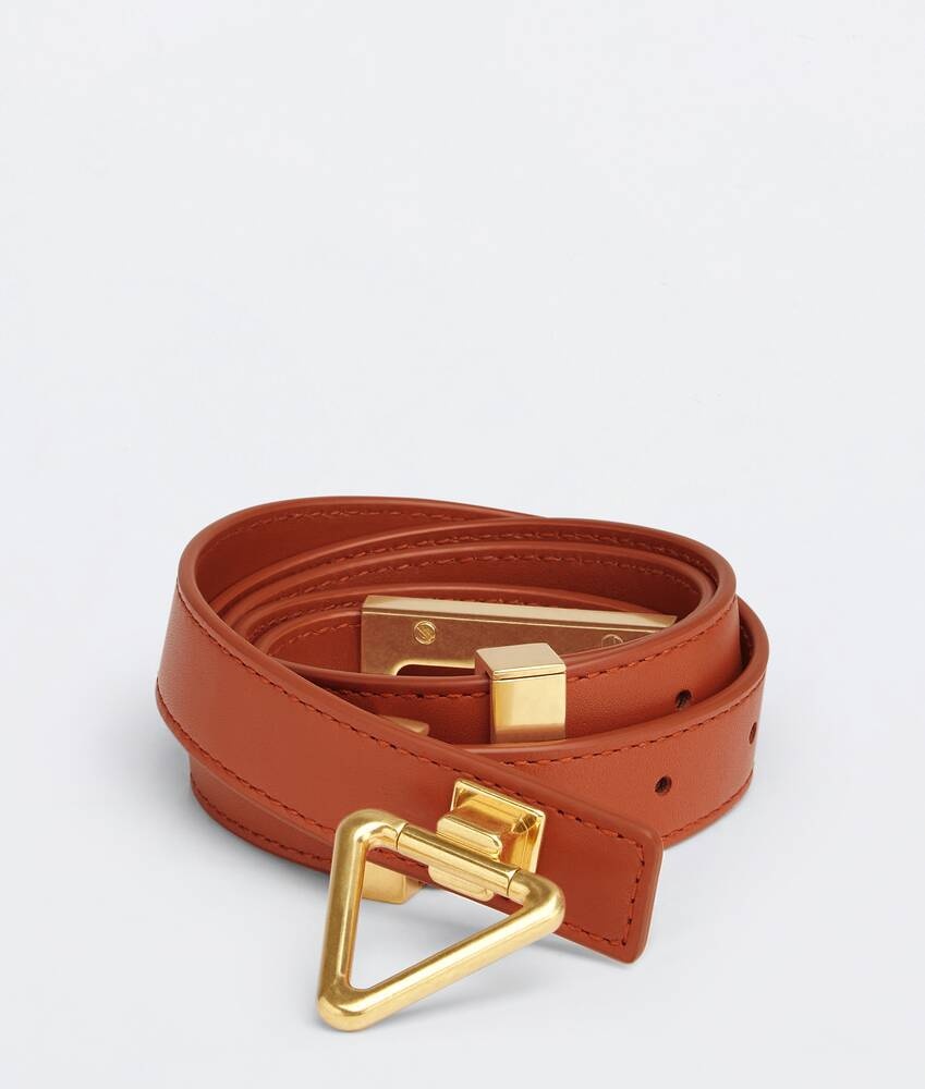 • Leather belt • Twist lock closure Material: 100% Calfskin • Lining: Calf leather • Color: Maple • Hardware: Gold finish • Height: 2 cm • Depth: 0.5 cm Made in: italy