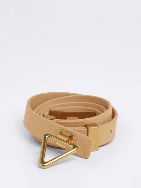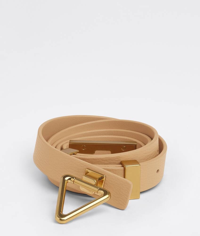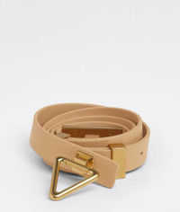 • Grained leather belt • Twist lock closure Material: 100% Calfskin • Lining: Calfskin • Color: Almond • Hardware: Gold finish • Height: 2 cm | 0.8" • Depth: 0.5 cm | 0.2" Made in: italy