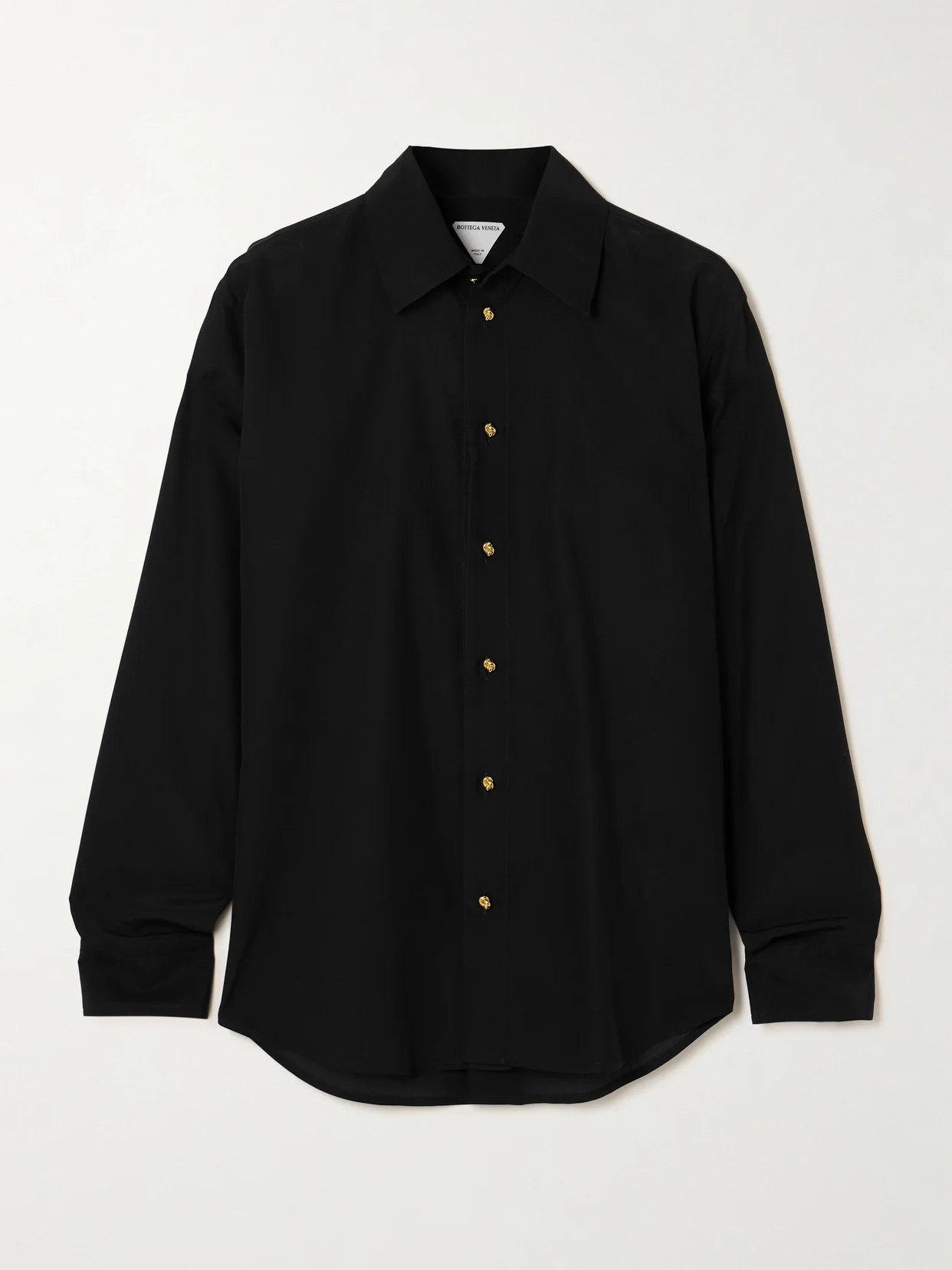The relaxed, drop-shoulder shape of this shirt is testament to Bottega Veneta's modern vision of luxury. It's cut from crisp poplin and fastens with knotted gold-tone buttons - a nod to the house's weaving techniques.
