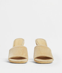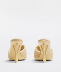 • Tufted mules • Metallic heel Material: 100% Polyester • Lining: Lambskin • Color: Butter • Lugged rubber outsole • Heel: 9 cm | 3.5" Made in: italy
