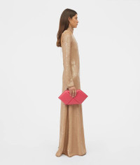 • Large intrecciato leather pouch • One interior pocket • Zipped closure Material: 50% Lambskin, 50% Calfskin • Lining: Calfskin • Color: Lollipop • Hardware: Gold finish • Height: 17 cm • Width: 36 cm • Depth: 2 cm Made in: italy