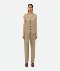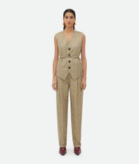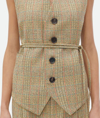 Belted gilet in Prince of Wales wool. Product Details - Prince of Wales wool gilet - Belt detail - Button and tie closure - Fully lined - Regular fit - Material: 48% Wool, 26% Cotton, 26% Polyester - Color: Beige/Yellow/Blue - Made in: Italy - Product code: 794207V4BW01487 Size & Fit - Model is 175 cm | 5'8" and is wearing a Bottega Veneta size 38