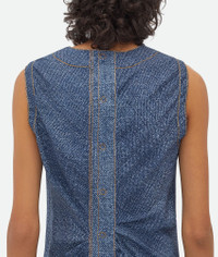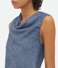 Midi dress realised in viscose silk with an enlarged denim print developed to recreate Product details • Printed denim viscose midi dress • Cowl collar detail • Button closure • Unlined • Regular fit Material: 92% Viscosa, 8% Silk • Color: Navy/White Made in: Italy Size & fit • Model is 178 cm | 5'10" and is wearing a Bottega Veneta size 38