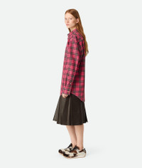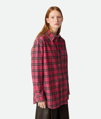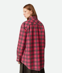 Shirt in soft nubuck with printed tartan effect. Product Details - Printed nubuck shirt - Tartan check effect - Special label on the interior - Button closure - Unlined - Oversized fit - Material: 100% calfskin - Color: Red/Black - Made in: Italy - Product code: 821321V4LT08912 Size & Fit - Model is 177 cm | 5'9" and is wearing a Bottega Veneta size 38