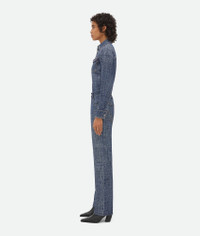 Trousers realised in viscose with an enlarged denim texture. Product Details - Textured denim viscose trousers - Button closure - Straight leg - Material: 40% Viscose, 35% Silk, 25% Polyester - Color: Indigo/White - Made in: Italy - Product code: 735547V3P504205 Size & Fit - Model is 178 cm | 5'10" and is wearing a Bottega Veneta size 38