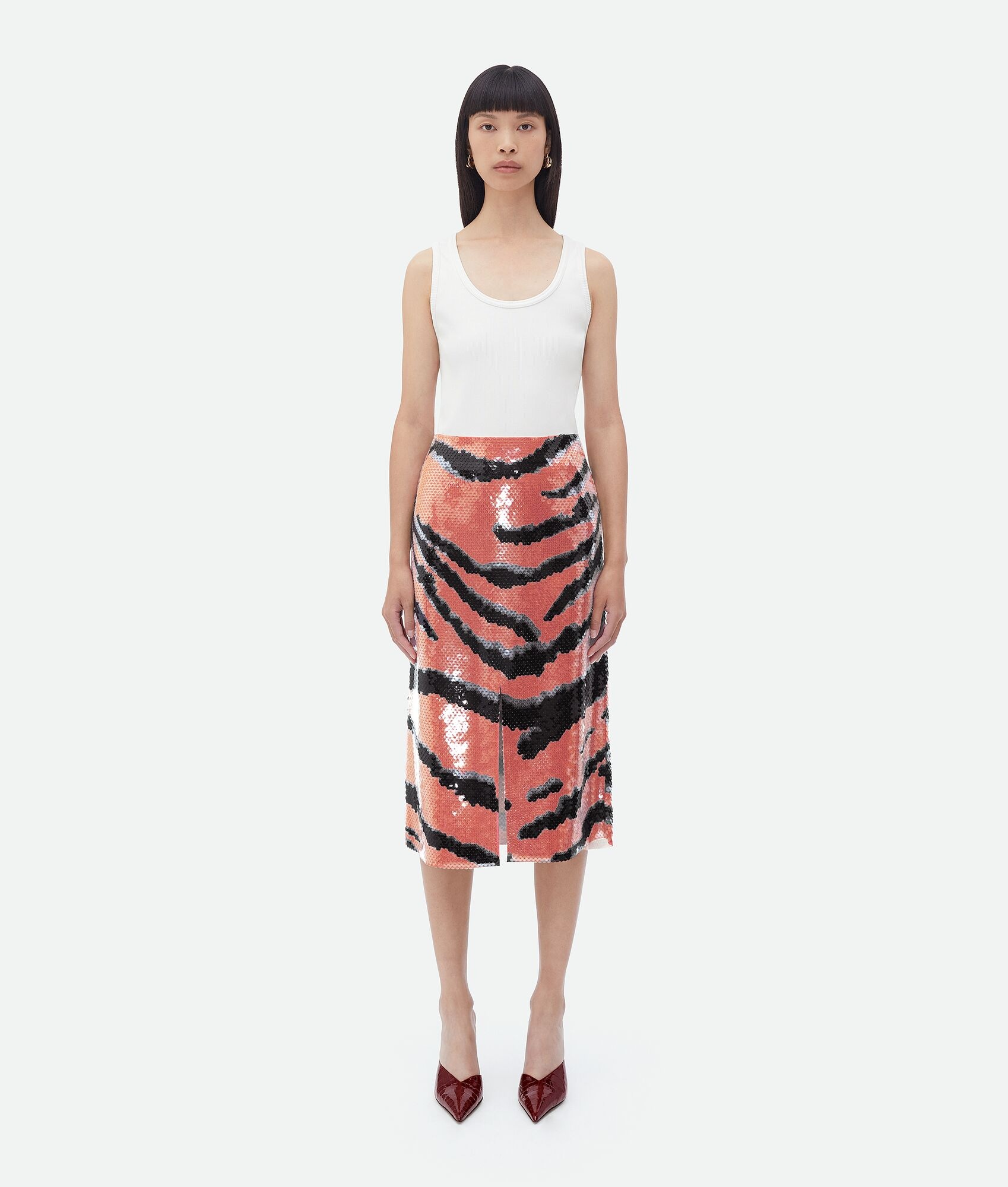 • Printed viscose skirt with all-over sequins • Zip closure • Unlined Material: 100% Viscose • Color: Maple/Black Made in: Italy