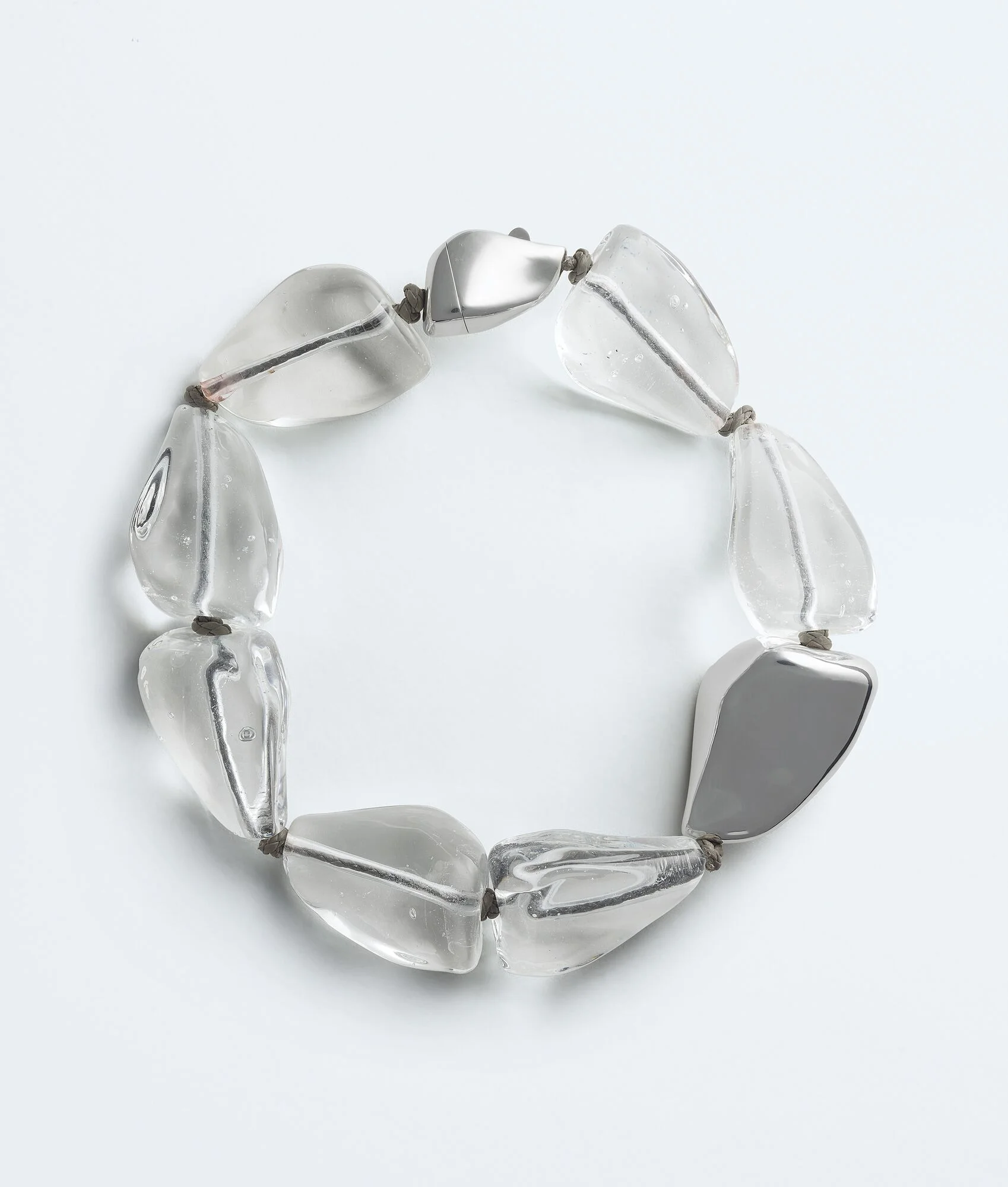 Necklace with sculptural forms made from sterling silver and artisan-crafted glass. Product Details - Glass and sterling silver necklace - Custom closure - Color: Basalt/Transparent - Made in: Italy - Product code: 865891V1A951577 Material - Material: sterling silver, glass Size & Fit - Prisma Length: 50 mm | 2" - Total length: 43 cm | 17"