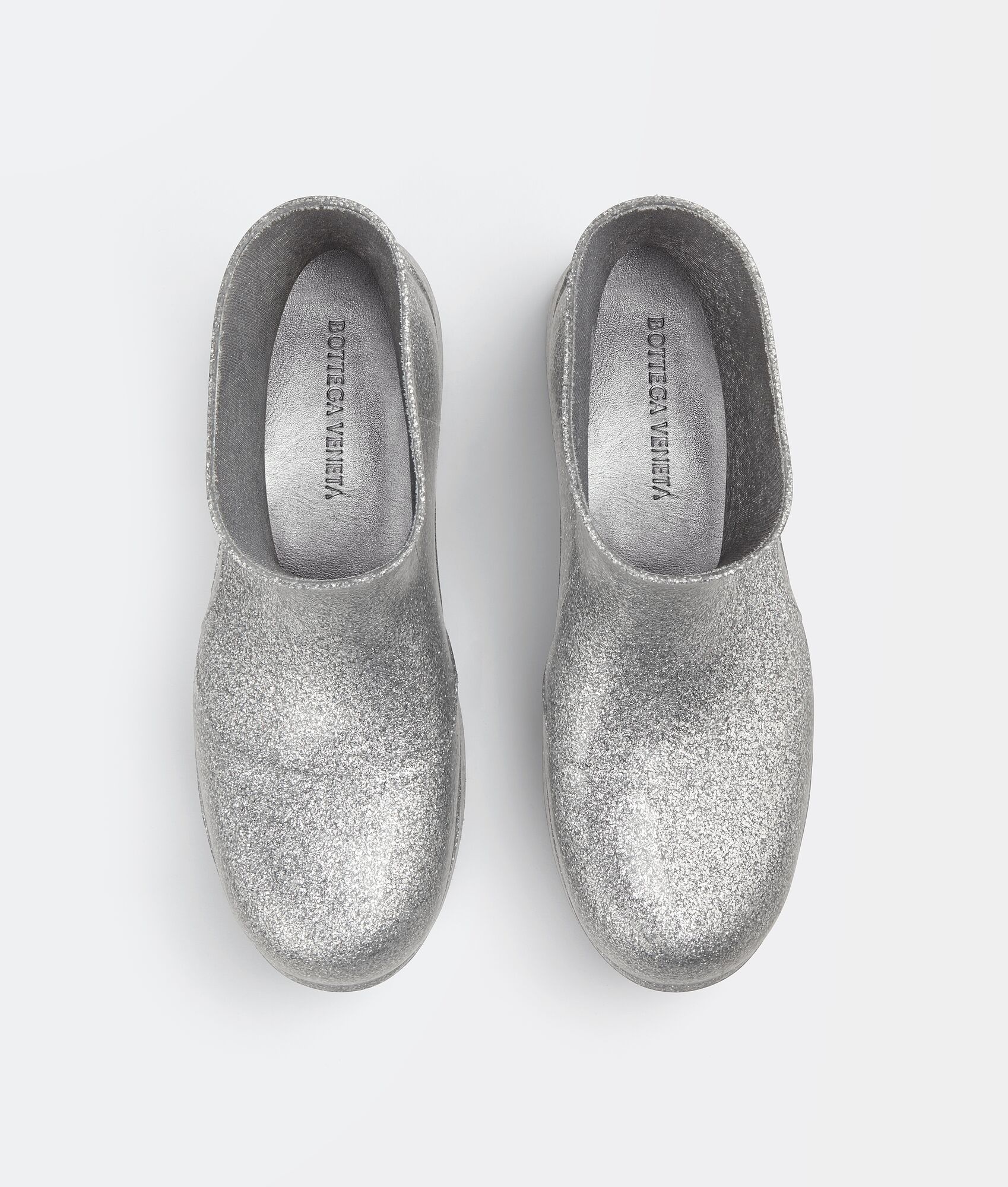 • Glitter rubber ankle boots Material: 100% Rubber • Lining: Cotton • Color: Silver • One-piece molded shoe • Flatform: 5.5 cm | 2.2" • Take care when using on particularly slippery surfaces Made in: italy