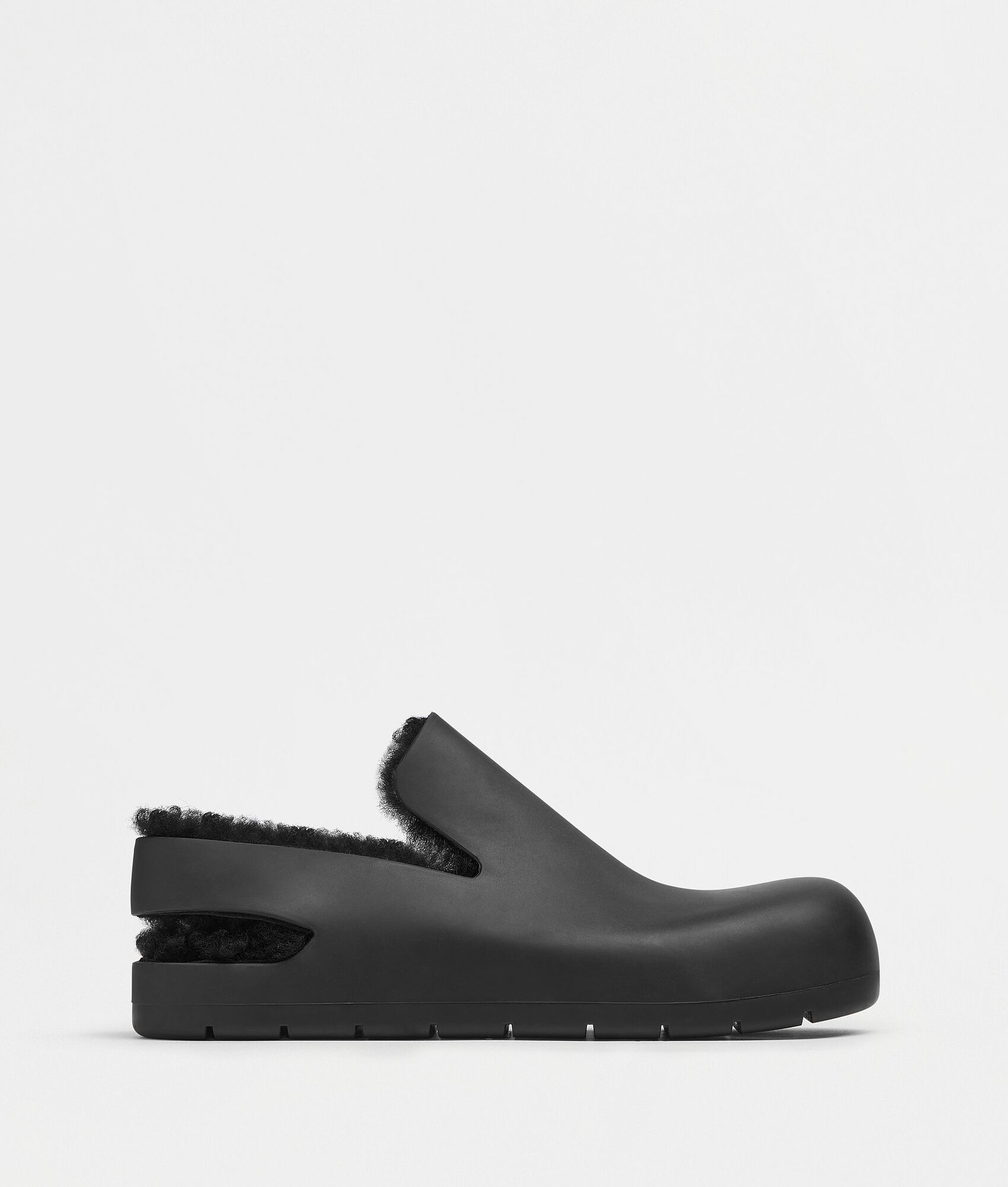 • Rubber slingback sandals Material: 70% Lambskin, 30% Rubber • Lining: Shearling • Color: Black • One-piece molded shoe Made in: italy
