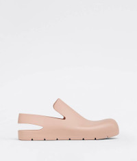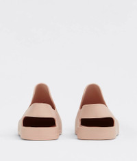 • Biodegradable rubber slingback sandals Material: 100% Rubber • Unlined • Color: Peachy • One-piece molded shoe • Fits large, take one size down • Take care when using on particularly slippery surfaces Made in: italy