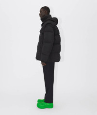 • Frosted poplin puffer • Hidden hood • Zip closure • Lined in same fabric • Oversized fit Material: 100% Cotton • Color: Black Made in: italy