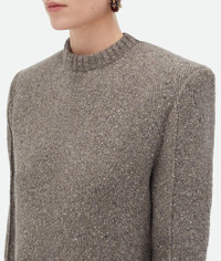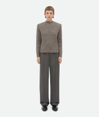 Tailored jumper in wool with shoulder pad detailing. Product Details - Wool tailored jumper - Shoulder pads detail - Regular fit - Material: 57% wool, 23% polyamide, 19% viscose, 1% elastane - Color: Riverbed Melange - Made in: Italy - Product code: 799140V4TK01830 Size & Fit - Model is 180 cm | 5'11" and is wearing a Bottega Veneta size S
