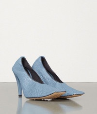 • Textured leather pumps • Contrasting stitching • High vamp • Squared toe • Cone heel DETAILS Composition: 100% Lambskin Color: Ice Heel height: 8.5 cm | 3.3” Made in Italy