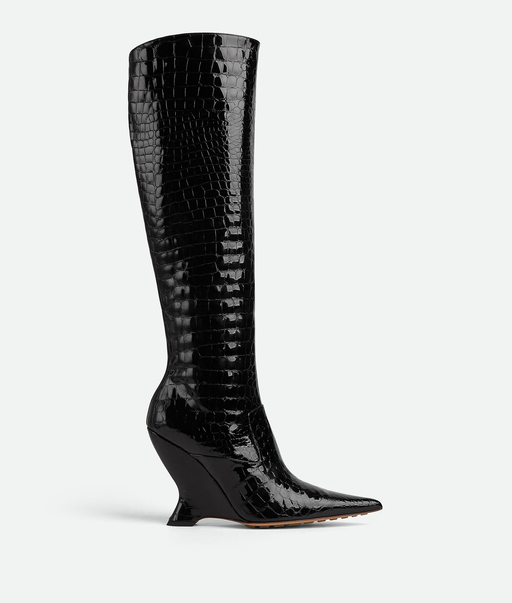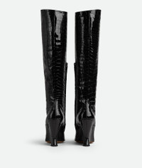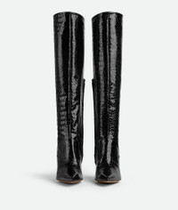 • Croc-embossed glossy leather boots Material: 100% Calfskin • Lining: Lambskin • Color: Black • Bio-based rubber-injected and biodegradable leather outsole • Heel: 10 cm | 3.9" Made in: Italy