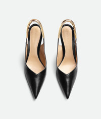 • Leather slingback pumps Material: 100% Lambskin • Lining: Lambskin • Color: Black • Hardware: Gold finish • Bio-based rubber-injected and biodegradable leather outsole • Heel: 10 cm | 3.9" Made in: Italy
