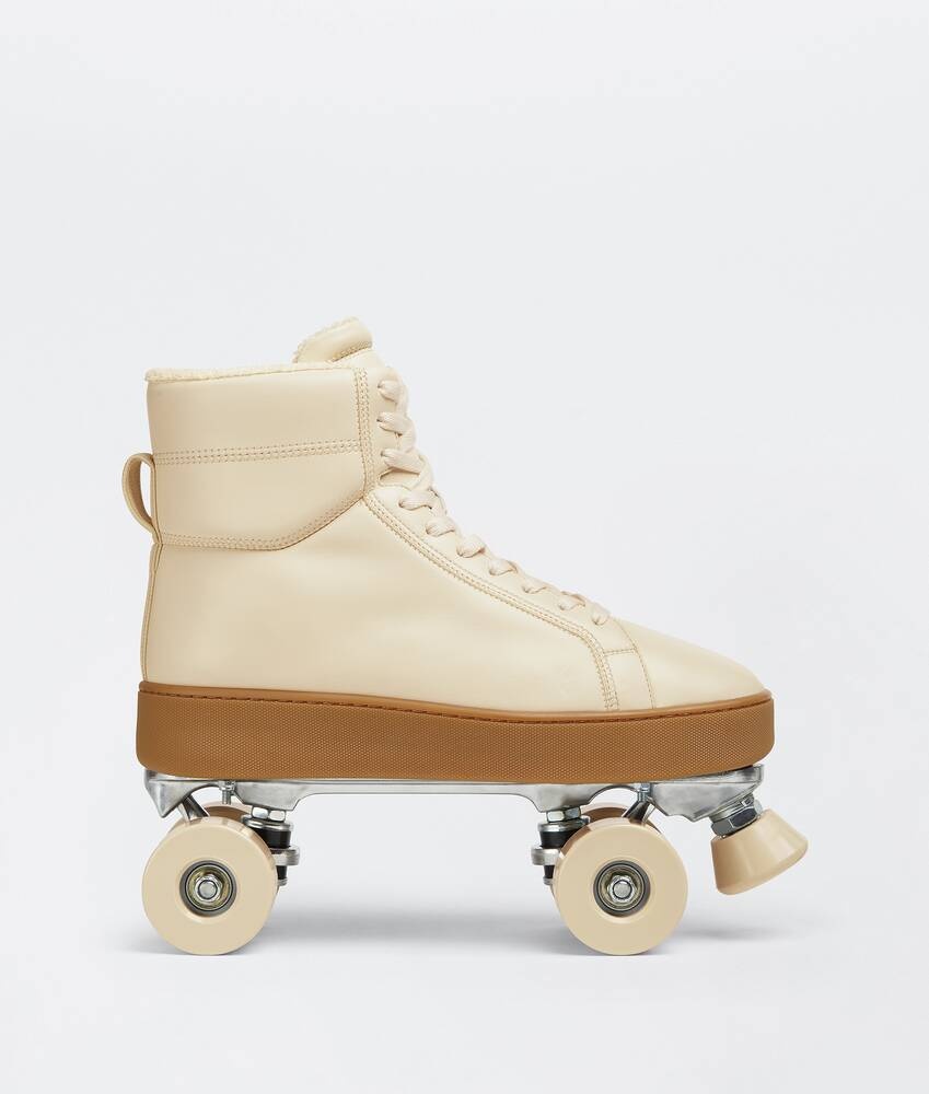 • Leather roller skates Material: 100% Lambskin • Lining: Spongy fabric • Color: Sea Salt/Rubber Band • Rubber outsole with attached rubber wheels • Flatform: 4.5 cm | 1.8" • Wheel diameter: 6 cm | 2.4" Made in: italy