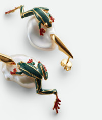 Earrings in 18k gold-finished sterling silver with baroque pearls and hand-enamelled Product Details - 18k gold-finish sterling silver earrings with freshwater pearls - Hand-enameled - Pin and butterfly closure - External dimension: 51 x 17 mm | 2" x 0.7" - Due to hygiene-related reasons, this piece may not be returned - Material: Sterling silver, pearl - Color: White/Avocado - Made in: Italy - Product code: 826964V721E9831