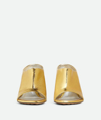 Mule sandal in reflective goatskin with almond toe. Product Details - Reflective leather mule sandal - Material: Goatskin - Lining: Laminated lambskin - Colour: Gold - Rubber injected leather outsole - Heel: 9 cm | 3.5” - Made in: Italy - Product code: 827720V5FO08265