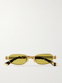 Bottega Veneta Eyewear's rectangle-frame sunglasses are designed with special attention to every last detail. Made from gold-tone metal etched with the logo, they have exposed hinges as well as squared nose pads and tortoiseshell acetate tips for comfort. Details & Care - Gold-tone metal, tortoiseshell acetate - Come with a case - 100% UV protection