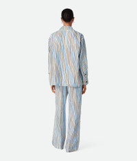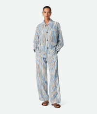 Pyjama set in striped habotai silk. Product Details - Habotai striped silk pyjama set - Special label on the interior - Packable bag - Button closure for shirt - Elasticated waistband for trousers - Relaxed fit - Material: 100% mulberry silk - Color: Admiral/Brown - Made in: Italy - Product code: 817460V50D04240