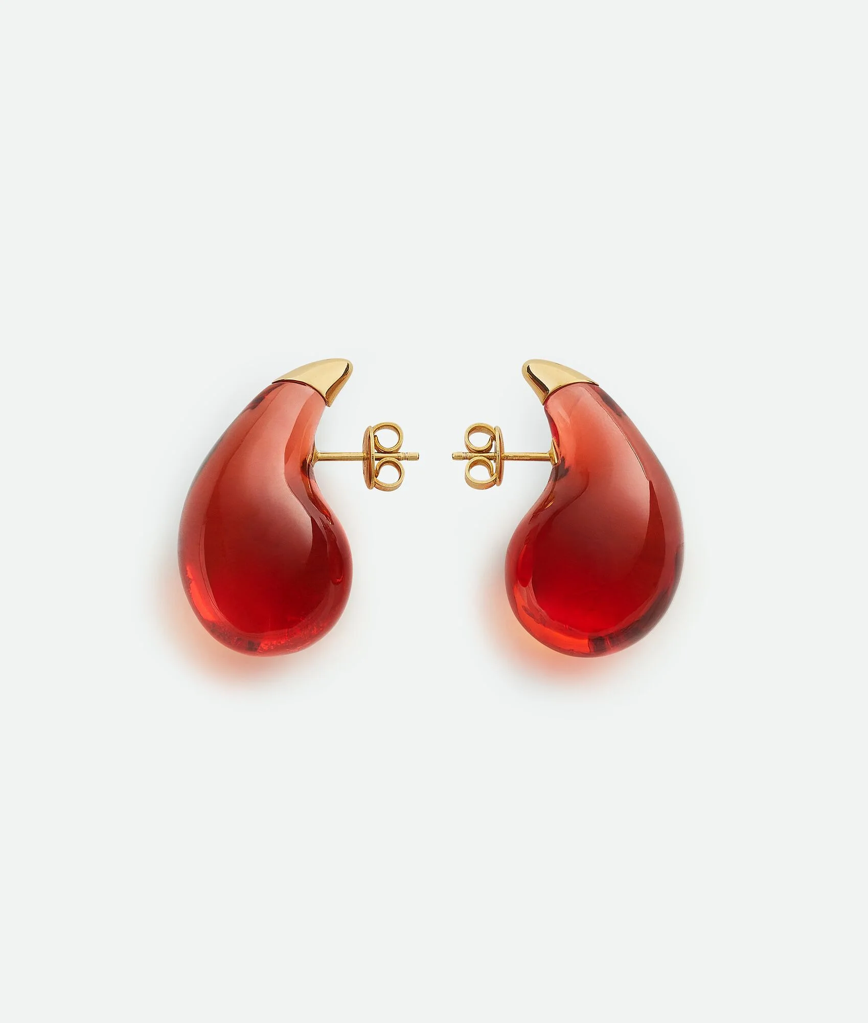 Earrings with signature drop shape realised in coloured resin and 18k gold-finished Product Details - 18k gold-finish sterling silver and resin earrings - Pin butterfly closure - Length: 30 mm | 0.1" - Width: 20 mm | 0.1" - Material: Resin, sterling silver - Color: Hibiscus - Due to hygiene-related reasons, this piece may not be returned - Made in: Italy - Product code: 786247VBOH36109