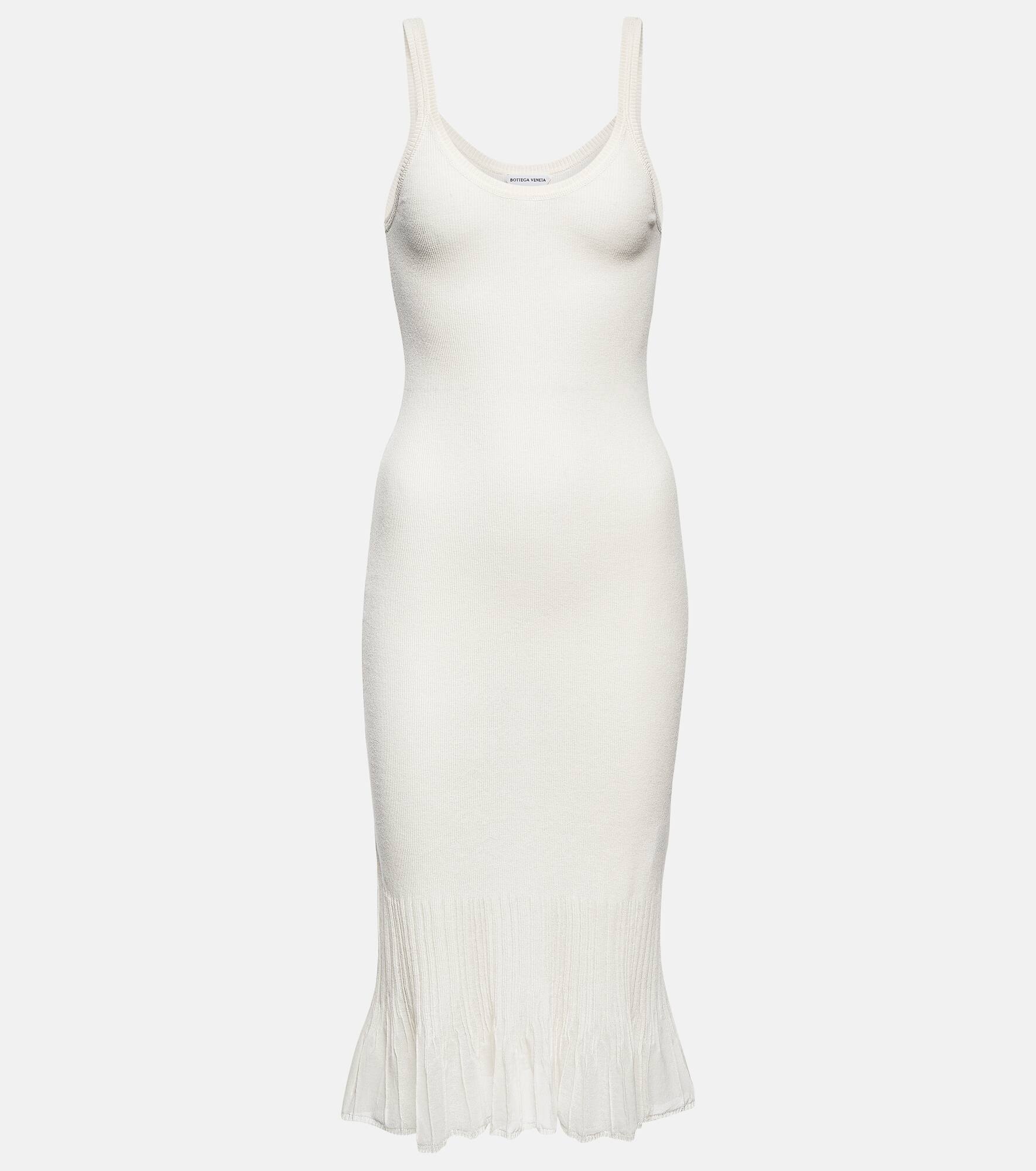 Bottega Veneta’s midi dress is a warm-weather classic. This piece has a ribbed knit construction and flares out at the hemline thanks to gathered pleats. Product Details - Material: 18% polyamide, 82% cotton - Care instructions: dry clean - Made in Italy - Designer color name: Chalk - Item number: P00790623 Size & Fit - True to size - Semi-sheer - Fitted - Lightweight material - The model seen in the picture is 178cm-5'10" and wearing a size XS