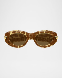 Crafted of tortoiseeffect acetate, these Bottega Veneta oval sunglasses offer a bold finish to any ensemble Eye/bridge/temple (in mm): 5516145 Monochromatic lenses Saddle nose bridge Signature ribbon motif at temples Thick, tapered arms Acetate 100% UVA/UVB protection Made in Italy
