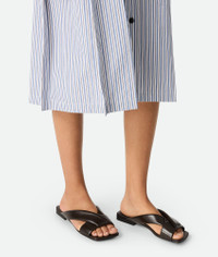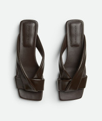 Flat mule sandal in shiny calfskin with padded tubular straps and twisted design. Product Details - Leather flat mule sandal - Material: Calfskin - Lining: Lambskin - Colour: Fondant - Rubber injected leather outsole - Made in: Italy - Product code: 827569V3H902113