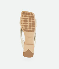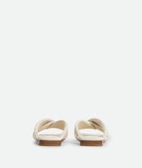 Flat mule sandal in woven lambskin with padded tubular straps and twisted design. Product Details - Woven leather flat mule sandal - Lining: Lambskin - Color: Sea Salt - Rubber-injected leather outsole - Made in: Italy - Product code: 837897V2ED09031