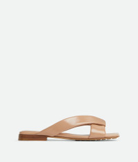 Flat mule sandal in shiny calfskin with padded tubular straps and twisted design. Product Details - Leather flat mule sandal - Lining: Lambskin - Colour: Cipria - Rubber injected leather outsole - Made in: Italy - Product code: 827569V3H909912 Material - Material: Calfskin