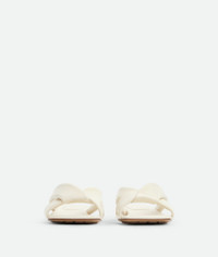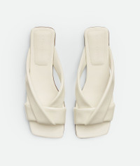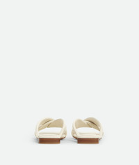 Flat mule sandal in shiny calfskin with padded tubular straps and twisted design. Product Details - Leather flat mule sandal - Material: Calfskin - Lining: Lambskin - Color: Sea Salt - Rubber-injected leather outsole - Made in: Italy - Product code: 827569V3H909031