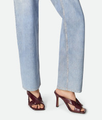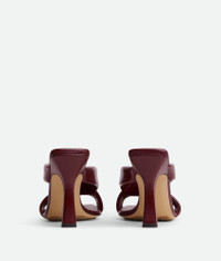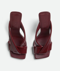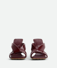 Mule sandal in shiny calfskin with padded tubular straps and twisted design. Product Details - Leather mule sandal - Material: Calfskin - Lining: Lambskin - Colour: Barolo - Rubber injected leather outsole - Heel: 9 cm | 3.5” - Made in: Italy - Product code: 827612V3H902240