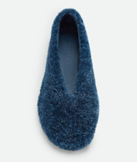 Ballerina in merino shearling with supple construction. Product Details - Merino shearling ballerina - Lining: Goatskin - Color: Ocean - Rubber-injected leather outsole - Made in: Italy - Product code: 843963V5XR14306 Material - Material: Merino shearling