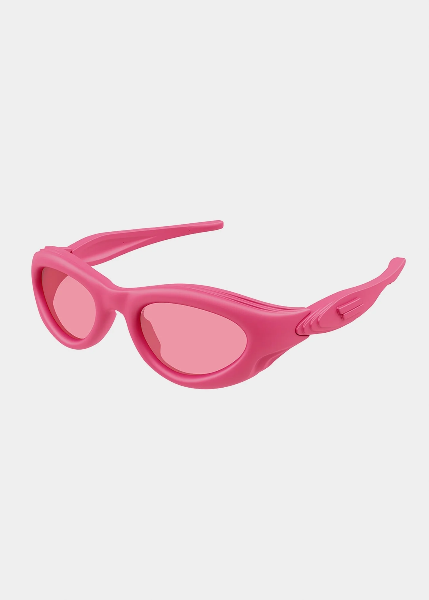Bottega Veneta oval sunglasses in neon injection plastic Lens /bridge/temple (in mm): 51-22-120 Solid lenses Saddle nose bridge Signature raised double lines on temples Wide, tapered arms 100% UVA/UVB protection Made in Japan Proposition 65 warning for California residents Online Inquiries: BGS21_D492D| Store Inquiries: #4313271