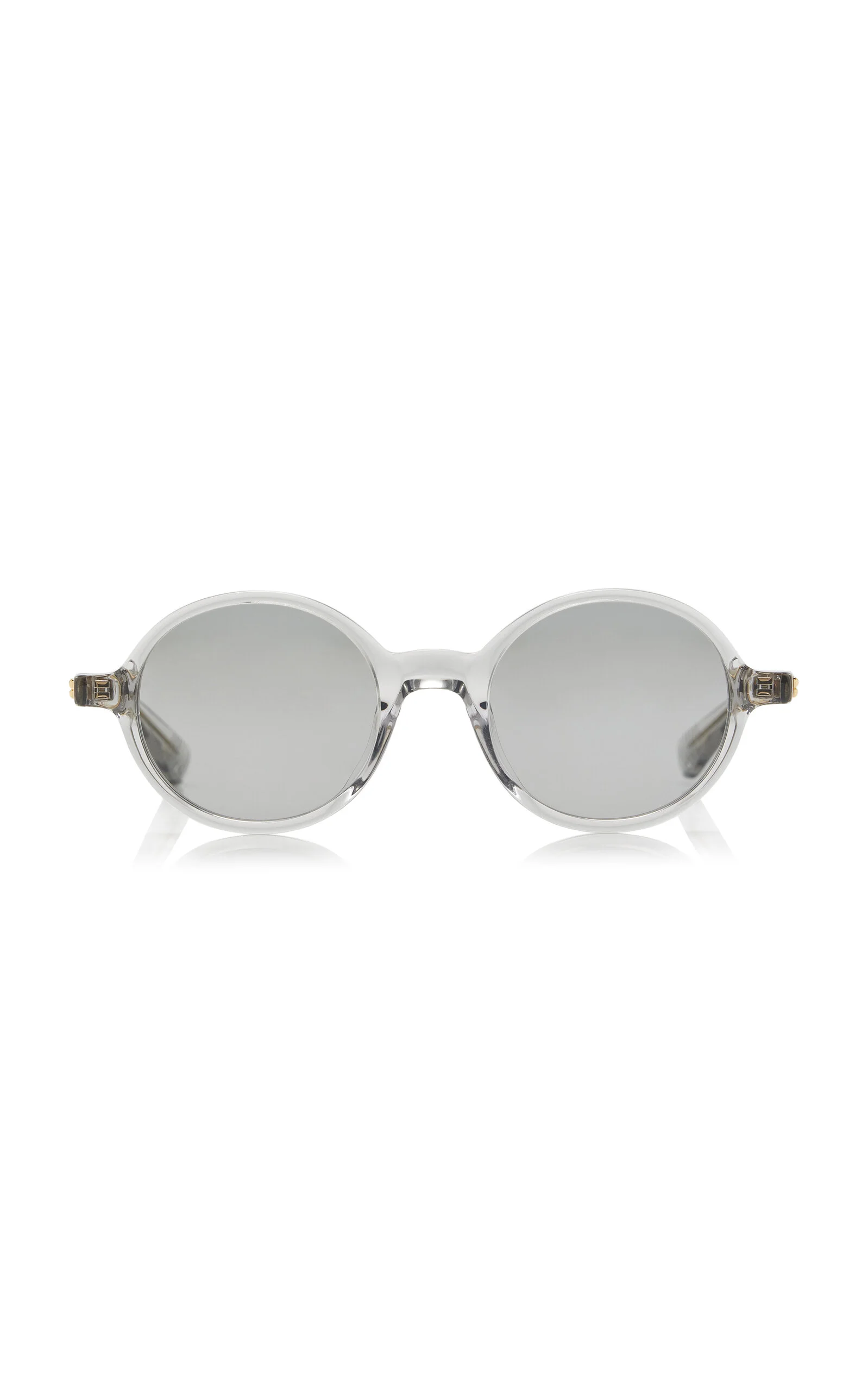 Bottega Veneta's eyewear collection reimagines iconic silhouettes in bold new volumes. These sunglasses have round frames made from transparent acetate with grey lenses and the house's ribbon hardware at the temples. PRODUCT DETAILS - Composition: recycled acetate - 100% UVA/UVB protection - Made in Italy