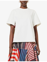 PRODUCT DETAILS - Bottega Veneta cotton-jersey T-shirt - 100% cotton; contrast 92% cotton, 8% silk - Slips on - Regular fit, round-neckline, ribbed trim at neck, short sleeves, contrast panel at sides - Specialist dry clean - True to size - Model is 5ft 10in/1.78m and wears a size small - Midweight, slight stretch Ref: R04382491