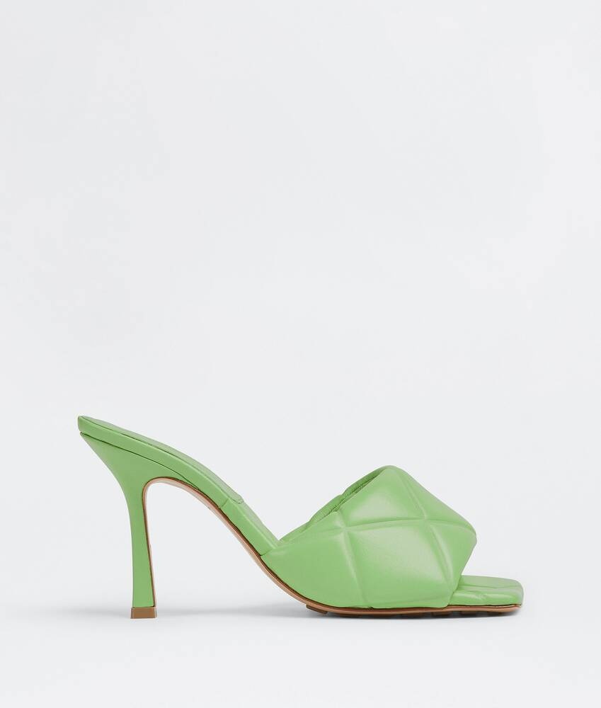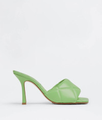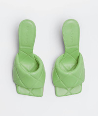 • Thermo-sealed quilted leather mules Material: 100% Lambskin • Lining: Lambskin • Color: Pistachio • Rubber-injected leather outsole • Heel: 9 cm | 3.5" Made in: italy