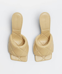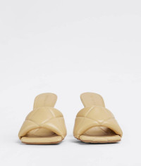 • Thermo-sealed quilted leather mules Material: 100% Lambskin • Lining: Lambskin • Color: Cane sugar • Rubber-injected leather outsole • Heel: 9 cm | 3.5" Made in: italy