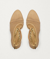 • Nappa leather sandals with mesh overlay • Single strap over the foot • Leather trimmed mesh D'Orsay layer • Chunky gold-finish chain threaded through back loop • Pointed toe • Stiletto heel • Rubber-injected leather sole for comfort and stability DETAILS Composition: 50% Polyamide, 50% Lambskin Color: Beige Hardware: Gold finish Heel height: 9.5 cm | 3.7” Made in Italy