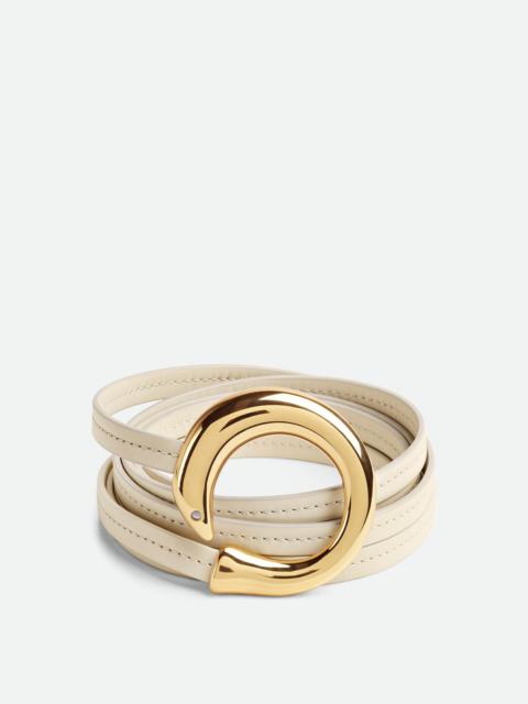 Belt in smooth calf leather with sculptural striped buckle in sardine-inspired form. Product Details - Smooth calf leather belt - Metal striped sardine buckle - Knot fastening closure - Material: Calfskin - Lining: Calf leather - Color: String - Hardware: Muse Brass & Silver finish - Height: 2 cm | 0.8" - Depth: 0.5 cm | 0.2" - Made in: Italy - Product code: 794486V2BE73236