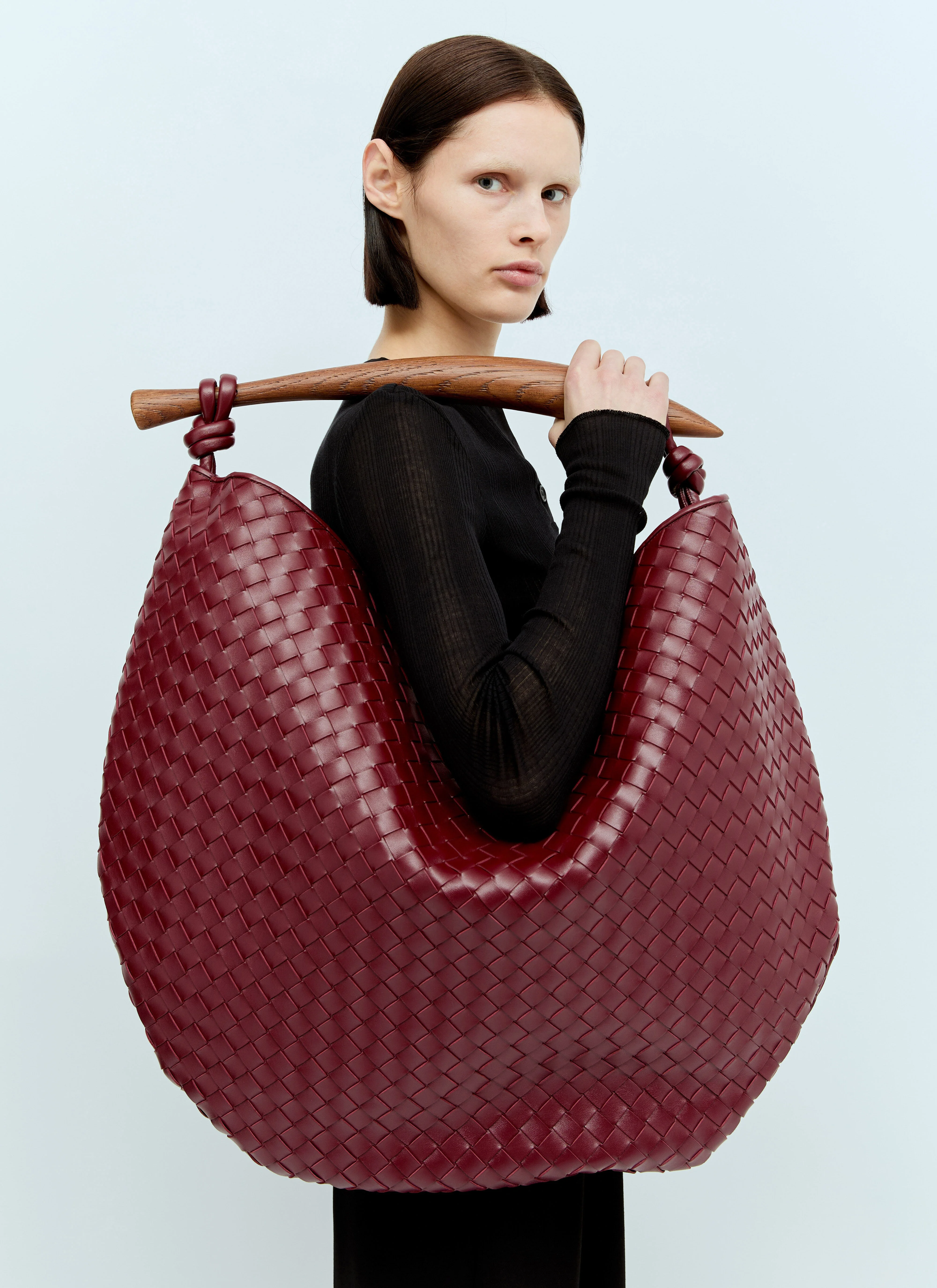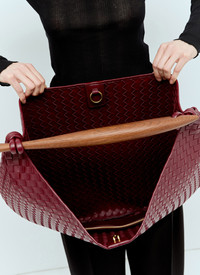 Sardine bermuda handbag in intrecciato woven leather with rovere oak handle. - Top handle - Intrecciato weave - One main compartment - Interior zip pocket - Made in Italy - 100% Leather - Color: Burgundy - Code: 786167 VCPPM 6446