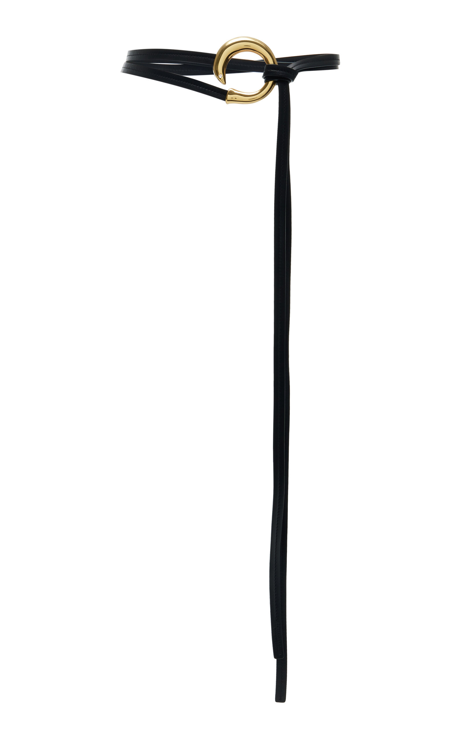 If you're a style enthusiast like the rest of us, then you've undoubtedly seen Bottega Veneta's newest lineup of must-have accessories. Crafted from French calfskin leather, this statement-making belt has two adjustable straps that can either be pressed into the brass horseshoe buckle or wrapped around it. Wear it to cinch boxy blazers and flowing dresses alike. PRODUCT DETAILS - Push stud fastening - Composition: calfskin leather, brass - Made in Italy